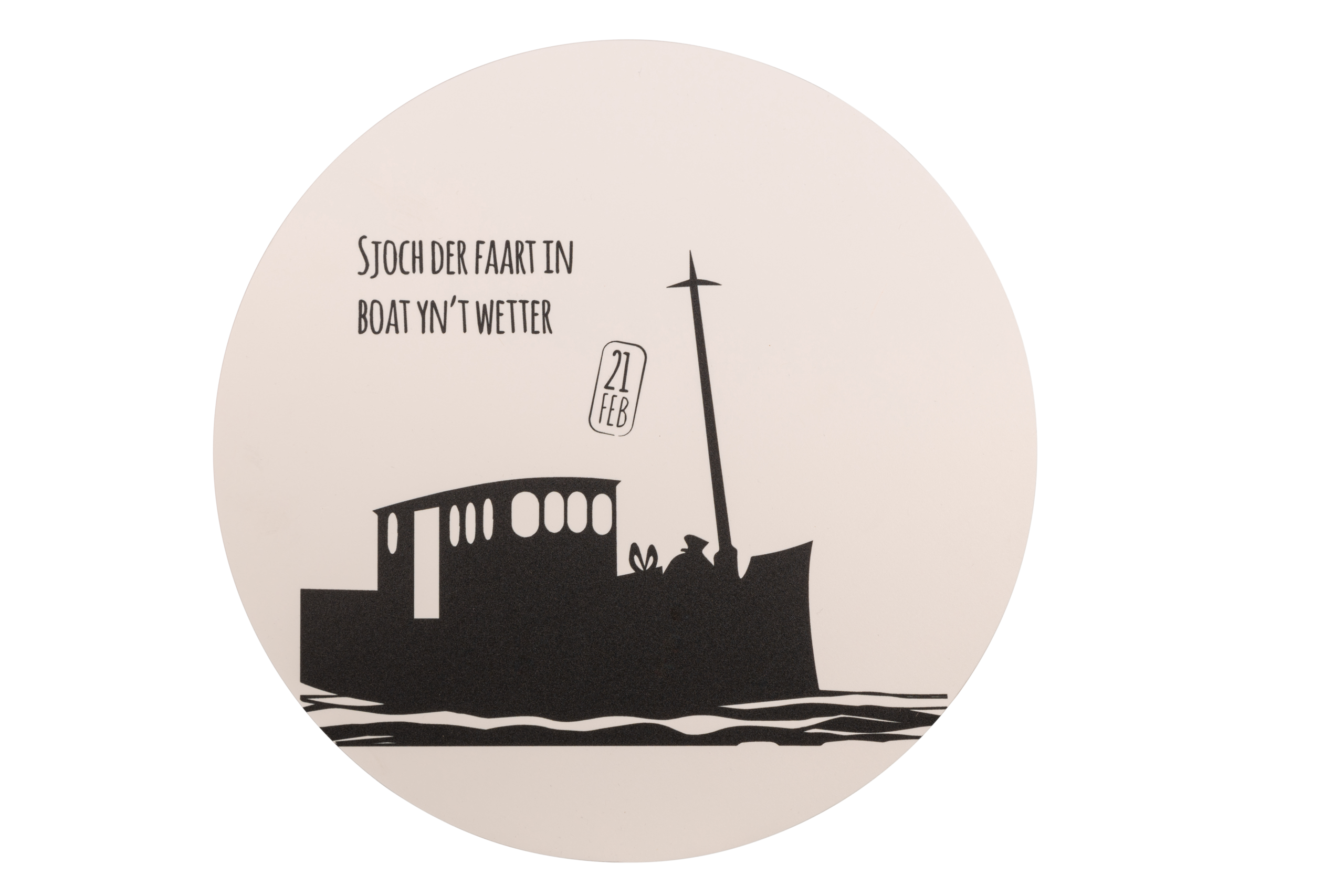 Mooie muurcirkel met tekst Sjoch der faart in boat yn ’t wetter.