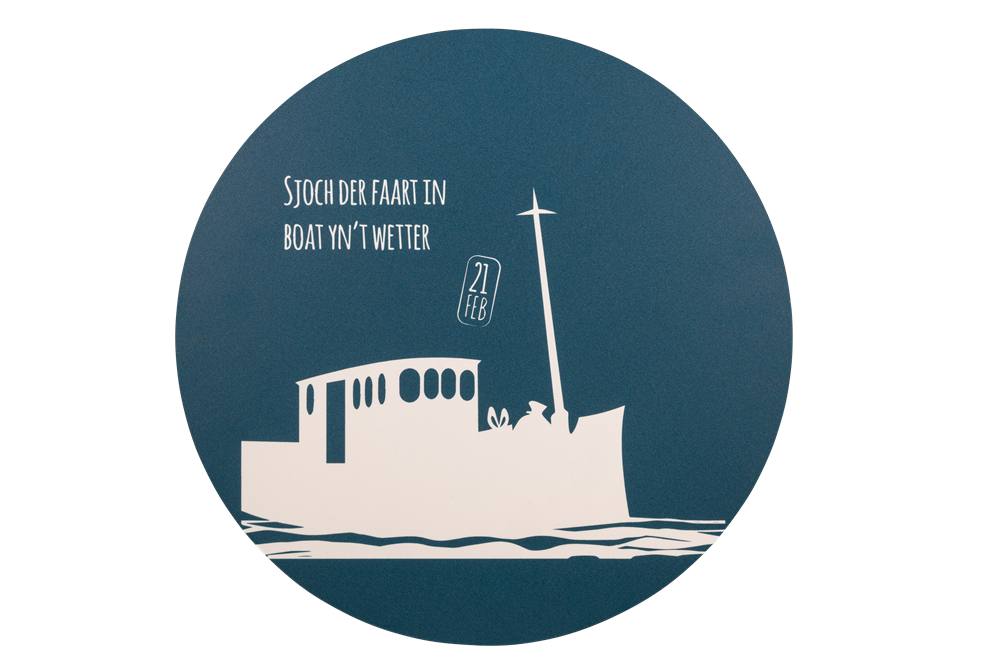 Mooie muurcirkel met tekst Sjoch der faart in boat yn ’t wetter.