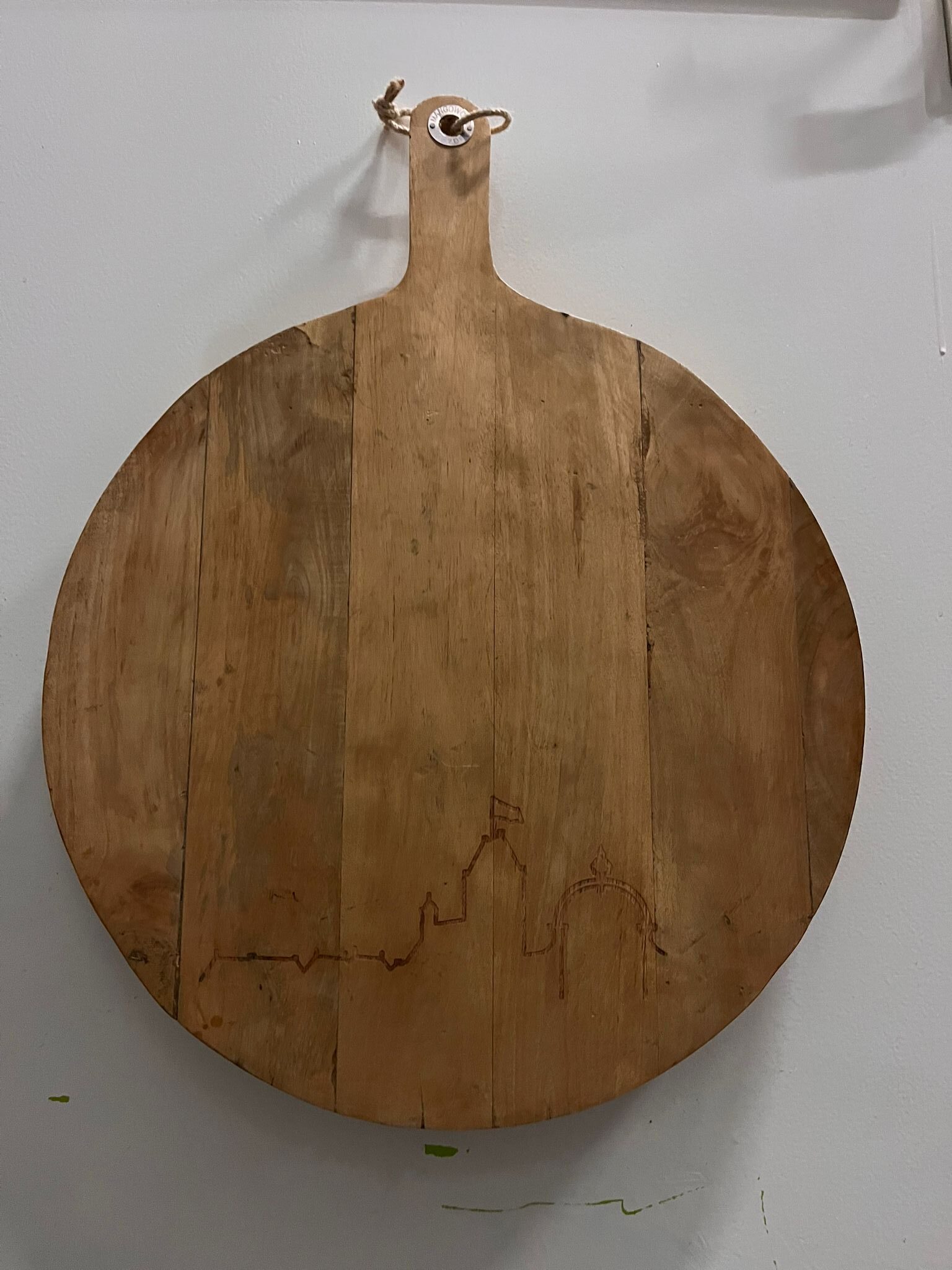 Houten tapasplank met skyline van Grou.
